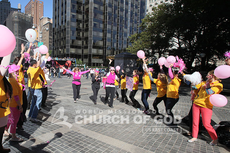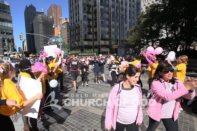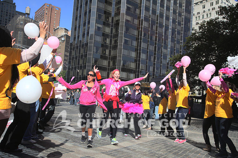 With an early start, nearly 150 volunteers from the World Mission Society Church of God shared the love of Heavenly Mother by cheering on the brave participants in the two-day, 39-mile walk throughout Manhattan, with a final celebration kicking off at Pier 84.